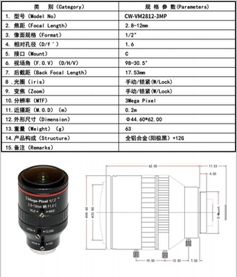 Ống kính công nghiệp 4-12mm200 triệu HD 1 2 C cổng thiết bị chiếu phụ kiện ống kính máy ảnh công nghiệp méo thấp - Phụ kiện máy chiếu điều khiển máy chiếu panasonic Phụ kiện máy chiếu
