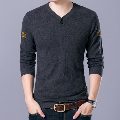 Ordos mùa thu và mùa đông áo len màu rắn thanh niên nam tự tu luyện áo len cashmere cổ áo len đan áo len đáy áo khoác hoodie nam Áo len