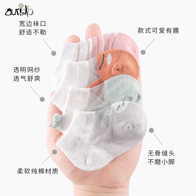 Pha lê trẻ sơ sinh bông vớ mùa hè phần mỏng sơ sinh vớ bé băng kính mỏng lưới thở mắt dễ thương - Vớ vớ chống trơn trượt cho bé