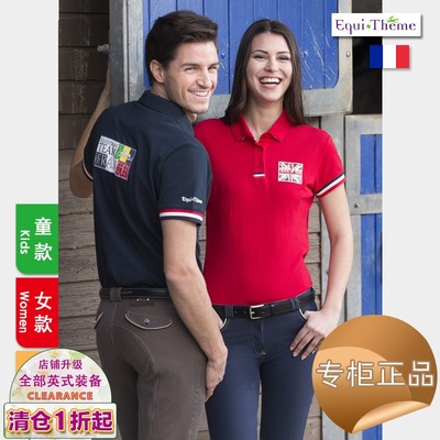 Pháp nhập khẩu E-THEME cờ T-Shirt cưỡi ngựa ngắn tay T-Shirt cưỡi thể thao giản dị T-Shirt Tây Khổng Lồ mũ cưỡi ngựa Môn thể thao cưỡi ngựa