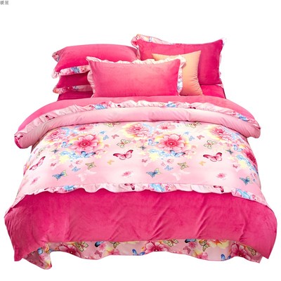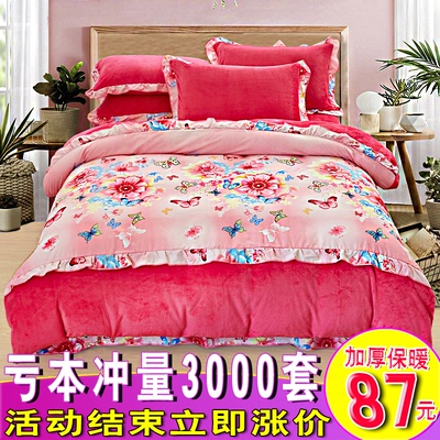 Phiên bản Hàn Quốc của cashmere Pháp bốn mảnh cộng với nhung dày mùa đông lông cừu san hô 4 bộ chăn ga gối đệm hai mặt cashmere ấm áp chăn ga gối đệm khách sạn