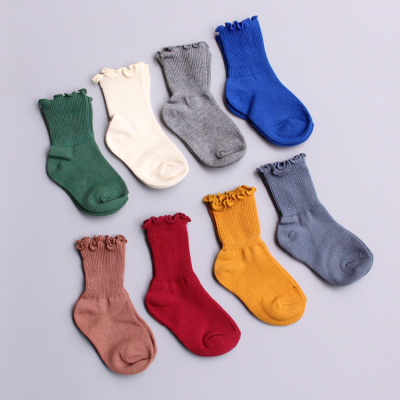 Phiên bản Hàn Quốc của mùa xuân và mùa hè mới cotton nguyên chất màu rắn cô gái vớ trẻ em công chúa vớ trẻ em vớ lỏng - Vớ vớ chống trượt cho bé