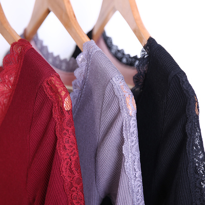 Phiên bản Hàn Quốc của nữ mùa xuân và mùa thu ren dài tay cổ chữ V rỗng thân thoáng khí thân áo mỏng bụng ấm đồ lót mỏng áo lót cao tuổi nam giới
