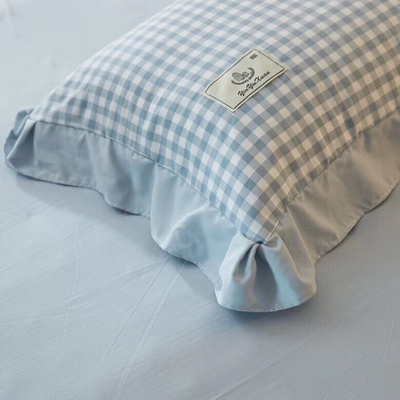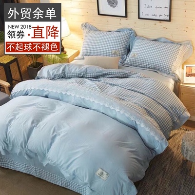 Phiên bản Hàn Quốc của ren ngủ màu hồng giặt bông bốn mảnh bộ bông không kẻ sọc in chăn bông trải giường 1,8m bông chăn ga gối đệm Bộ đồ giường bốn mảnh
