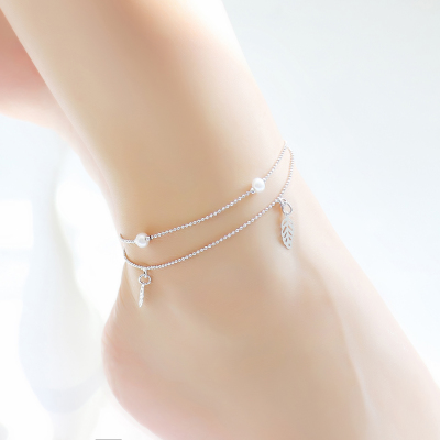Phiên bản Hàn Quốc của vòng chân ngọc trai bạn gái phụ kiện đơn giản cho sinh viên đơn giản chân tươi chuỗi trang sức gợi cảm Sen hoang dã lắc chân vàng tây Vòng chân