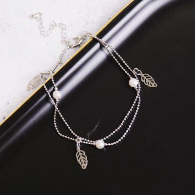 Phiên bản Hàn Quốc của vòng chân ngọc trai bạn gái phụ kiện đơn giản cho sinh viên đơn giản chân tươi chuỗi trang sức gợi cảm Sen hoang dã lắc chân vàng tây