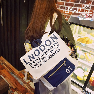 Phiên bản Hàn Quốc của xu hướng thời trang đại học hoang dã giản dị chữ đơn giản nam và nữ túi đeo vai màu túi vải ba lô balo praza