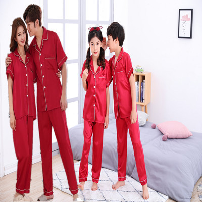 Phiên bản tiếng Hàn của bộ đồ ngủ dài tay cho phụ huynh và trẻ em bằng lụa mùa xuân và mùa thu một gia đình gồm bốn mẹ và con gái băng lụa và bé gái phục vụ nhà mỏng - Trang phục dành cho cha mẹ và con đồ gia đình đi biển Trang phục dành cho cha mẹ và con