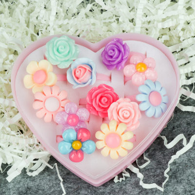 Phim hoạt hình Cô gái dễ thương Cô gái trẻ Đá quý Nhẫn nhỏ Trang sức Công chúa Phụ kiện tóc Hairpin Kim cương Nhẫn nhựa Set - Nhẫn nhẫn nam vàng tây Nhẫn