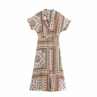 Phong cách châu Âu và Mỹ 2019 mùa thu mới của phụ nữ in kiểu áo sơ mi tay ngắn thắt lưng cao eo Một chiếc váy váy chữ - A-Line Váy mẫu váy chữ a cho người béo