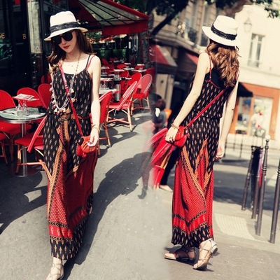 Phong cách dân tộc đầm nữ hè 2018 mới đình chỉ váy cotton lụa đi biển đi biển váy đầm boho váy maxi