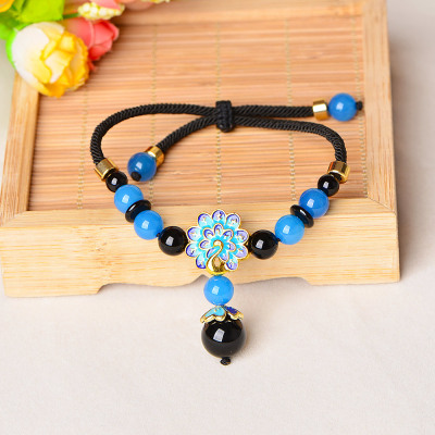 Phong cách quốc gia màu xanh ngọc bích vòng chân xã hội nữ trang sức retro phong cách Hàn Quốc của các sinh viên đơn giản Sen chân chuỗi vòng lắc chân vàng trắng