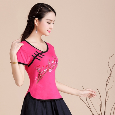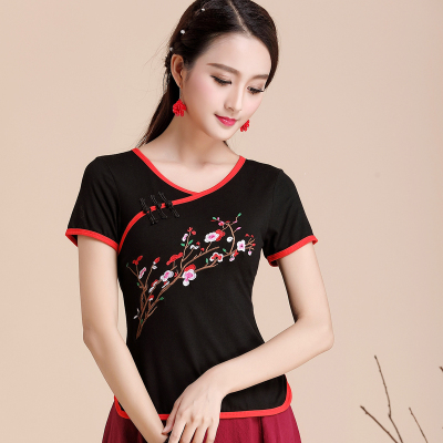 Phong cách trung quốc gió quốc gia mùa hè của phụ nữ áo sơ mi thêu mỏng thêu ngắn tay t-shirt nữ cotton kích thước lớn đáy áo áo thun polo nữ