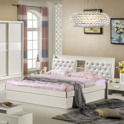 Phòng ngủ một mét tám giường cửa trượt tủ quần áo bộ nội thất nhà ở kết hợp tấm trắng đơn giản Trung Quốc đặt gỗ nội thất thông minh