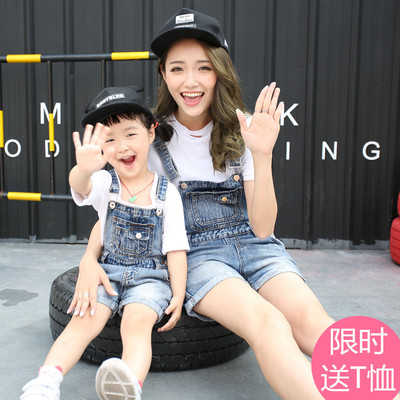 Phụ huynh-trẻ em mặc hè 2019 mới denim bib bib mẹ phụ nữ Quần short Hàn Quốc bé trai mùa hè mẹ và con - Trang phục dành cho cha mẹ và con đồng phục gia đình