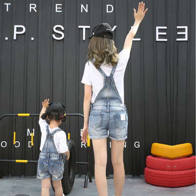 Phụ huynh-trẻ em mặc hè 2019 mới denim bib bib mẹ phụ nữ Quần short Hàn Quốc bé trai mùa hè mẹ và con - Trang phục dành cho cha mẹ và con đồng phục gia đình Trang phục dành cho cha mẹ và con