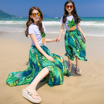 Phụ huynh-trẻ em mặc mùa hè 2018 phù hợp với giải trí bên mẹ và con gái dứa đính sequin quần đẹp cho cả gia đình Trang phục dành cho cha mẹ và con