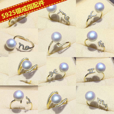 Phụ kiện DIY 12 vòng chòm sao S925 ngọc trai bạc nhẫn trống hỗ trợ thiết lập vòng bán thành có thể điều chỉnh - Nhẫn đeo nhẫn ngón út
