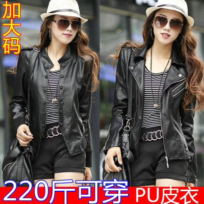 Phụ nữ mới mặc béo pu Pew áo khoác ngắn mm mm XL mùa thu ngắn và mùa đông mô hình nhỏ quần áo da xe máy áo khoác da lộn
