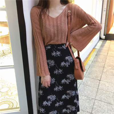 Phụ nữ mùa thu 2018 mới Hàn Quốc retro kèn tay áo mỏng phần mỏng lỏng áo len mỏng trùm đầu áo len kiểu hàn quốc cực đẹp