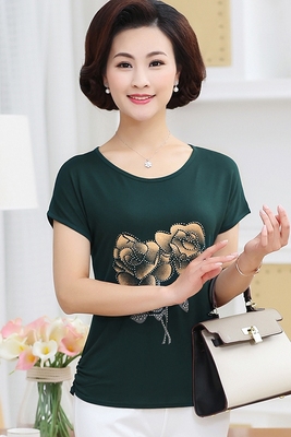 Phụ nữ trung niên ngắn tay t-shirt 40-50 tuổi mẹ trung niên nạp mùa hè phương thức bông cũ-shirted áo sơ mi áo khoác cho phụ nữ 60 tuổi Phụ nữ cao cấp