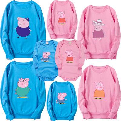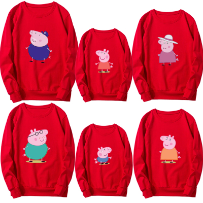 Piggy Peggy vui vẻ mặc quần áo mùa thu cha mẹ và con của một gia đình năm hoặc sáu ông bà cả gia đình cổ tròn áo len dài tay thủy triều áo gia đình đi biển Trang phục dành cho cha mẹ và con