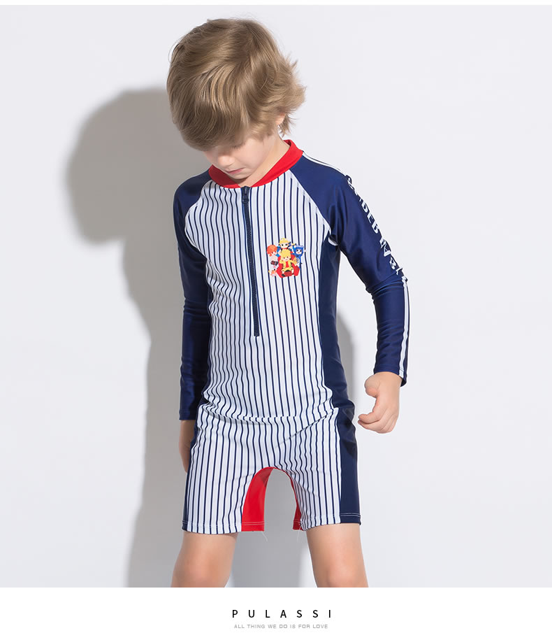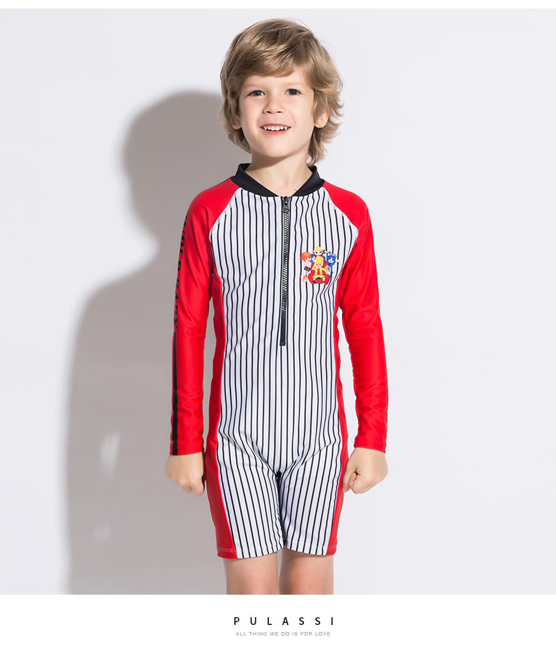 Plasch trẻ em đồ bơi bé trai dính liền với trẻ em lớn trẻ em dài tay chống nắng bãi biển áo tắm nam khô nhanh - Bộ đồ bơi của Kid đồ bơi nàng tiên cá cho be gái Bộ đồ bơi của Kid