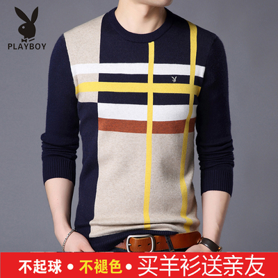 Playboy áo len dài tay thanh niên nam cổ tròn áo len mùa đông nam áo len trung niên ấm áp áo len áo gile len cho nam Hàng dệt kim