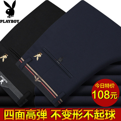 Playboy Casual Quần nam Loose Straight Đàn hồi Mùa thu Đen Slim Kinh doanh Quần dày Quần nam quần thun nam