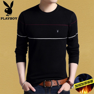 Playboy mùa đông cộng với áo thun nhung dài tay dày nam tự trồng ấm áp áo len thanh niên đan đáy áo thủy triều bộ thể thao nam mùa đông Hàng dệt kim
