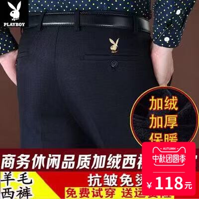Playboy quần trung niên nam mùa thu và mùa đông cộng với quần nhung dày phù hợp với quần len nam quần kinh doanh quần âu - Suit phù hợp áo vest nam Suit phù hợp