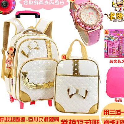 PU da ba bánh xe đẩy túi nữ 6-12 tháo gỡ trường tiểu học kéo hộp có thể được sử dụng dual-sử dụng không thấm nước trẻ em ba lô balo sieu nhe tre em