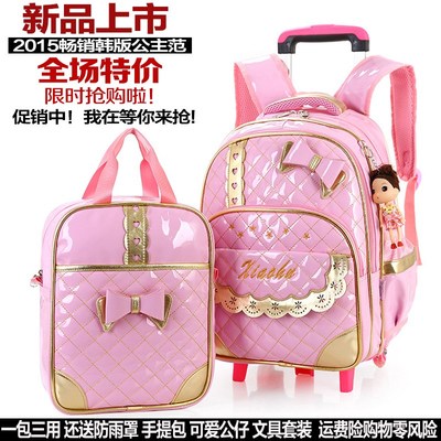 PU da ba vòng xe đẩy túi nữ 6-12 tuổi trường tiểu học kéo hộp có thể tháo rời dual-sử dụng không thấm nước trẻ em ba lô balo học sinh siêu nhẹ chống gù Túi bé / Ba lô / Hành lý