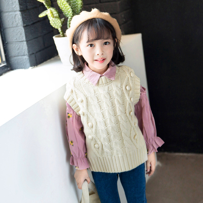 Quần áo bé gái mùa thu đông 2018 phiên bản Hàn Quốc của set đồ màu rắn hoang dã của áo len thắt nút áo len đan vest shop quan ao baby Áo ghi lê