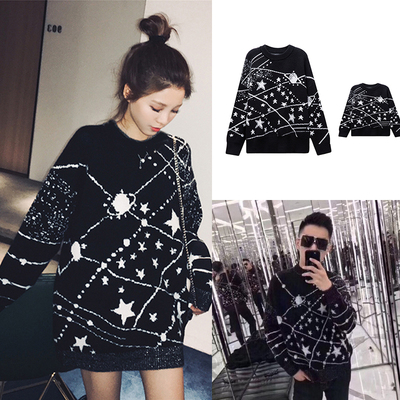 Quần áo bố mẹ cho bé 2018 mới thu đông quần áo gia đình bé ba áo len dày đầy sao mẹ và con gái mẹ con trai nhà thủy triều áo cặp gia đình Trang phục dành cho cha mẹ và con