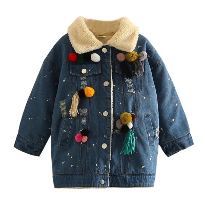 Quần áo denim dày cho bé 2018 mùa đông mới cho bé gái Quần áo trẻ em cộng với áo khoác nhung nhung wt-8120 áo phao mùa đông bé gái