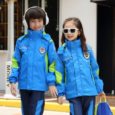 Quần áo mẫu giáo tùy chỉnh mùa thu và mùa đông nam và nữ mới áo khoác trẻ em cộng với nhung phù hợp với đồng phục tiểu học đồng phục thi đấu đồ cho bé trai Đồng phục trường học / tùy chỉnh thực hiện