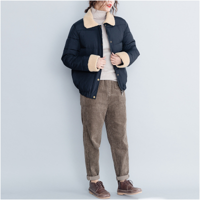 Quần áo mùa đông XL nữ 2018 phiên bản Hàn Quốc mới của áo len lông cừu thời trang áo khoác cotton xuống áo khoác ngắn sơ mi nữ