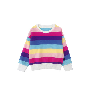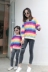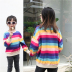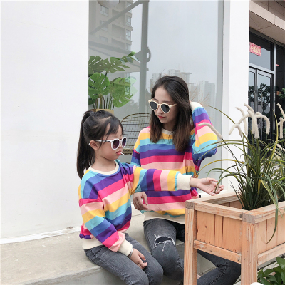 Quần áo mùa thu mới 2019 màu đỏ cha mẹ và trẻ em một gia đình ba phiên bản Hàn Quốc của áo len sọc cầu vồng lỏng lẻo mẹ và phụ nữ trẻ em - Trang phục dành cho cha mẹ và con đồ ngủ cho cả gia đình