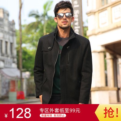 Quần áo nam lạc đà mùa đông nam kinh doanh bình thường dài cổ áo len áo khoác cha thân áo khoác kaki nam