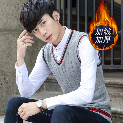 Quần áo nam thu đông cộng với áo len nhung vest vest phiên bản Hàn Quốc áo len dày ấm áp áo len học sinh không tay áo len thủy triều quần áo nam hàng hiệu