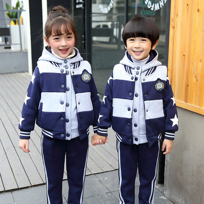 Quần áo sân vườn mẫu giáo mùa thu và mùa đông mặc bộ đồ ba mảnh dày tùy chỉnh đồng phục trường tiểu học mùa xuân và mùa thu thể thao phục vụ lớp trẻ em đồng phục trẻ em