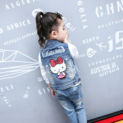 Quần áo trẻ em 2018 cho bé gái denim vest mới bé gái denim vest hoạt hình bé gái mặc 2-8 tuổi áo gile nỉ cho bé trai bé gái