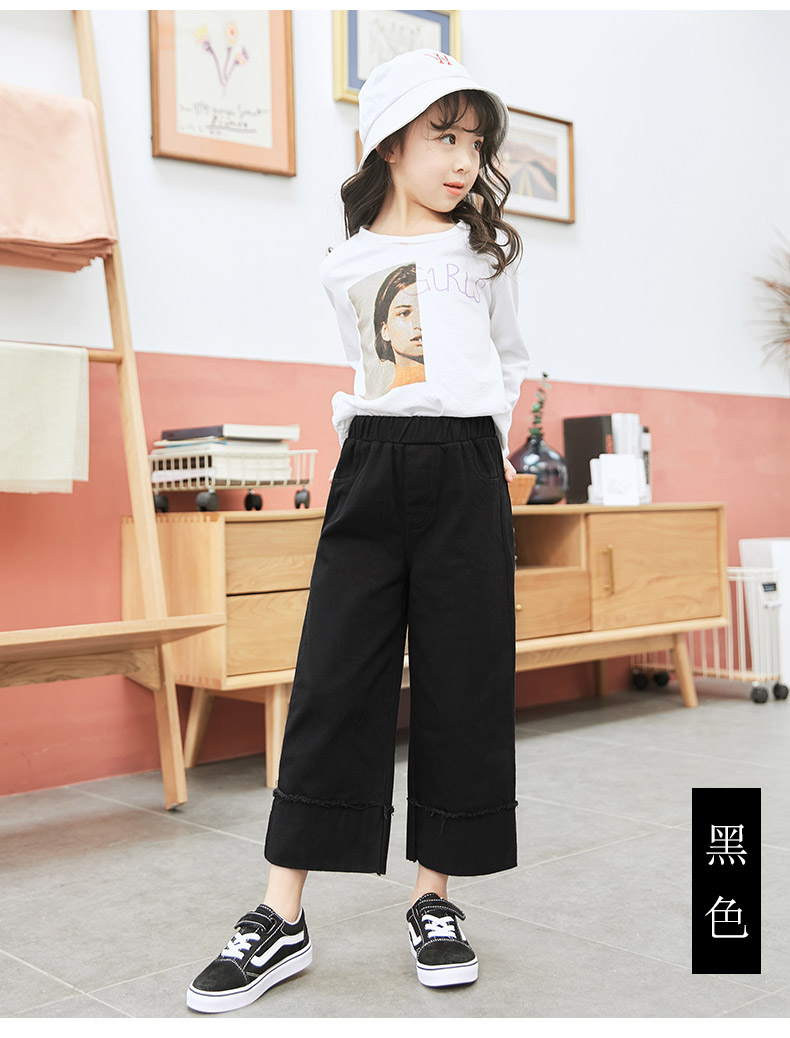 Quần bé gái 2019 mới mùa xuân và mùa thu Hàn Quốc của chiếc váy mùa thu ở giữa những chiếc quần bé lửng ống rộng 9 điểm ống rộng - Quần quần sịp bé trai Quần