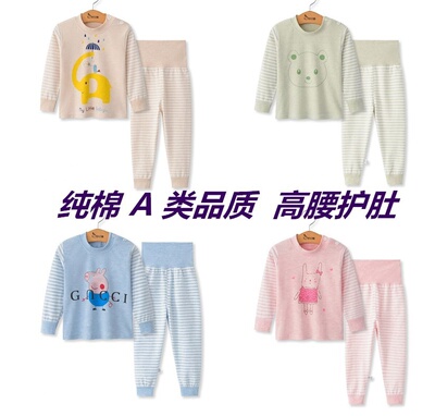 Quần dài màu đỏ cho trẻ em mùa thu quần dài đặt bé trai cotton dài tay trẻ em eo cao thiết kế đồ lót bụng bé gái đáy dài - Quần áo lót bộ đồ liền thân hình thú trẻ em