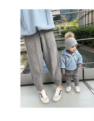 妈 亲子 + 绒绒 quần dệt kim trẻ em quần ấm áp thường xuyên quần mẹ và con trai quần áo em bé Trang phục dành cho cha mẹ và con
