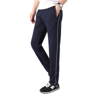 Quần đồng phục học sinh màu xanh đậm quần thể thao học sinh trung học nam và nữ quần tây trường một thanh trắng cộng với nhung mùa thu và mùa đông dày quần the thao nữ form rộng Quần thể thao