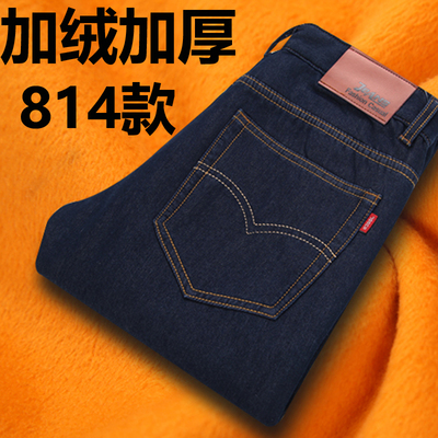 Quần jean nam trung niên mùa thu và mùa đông thẳng eo cao quần nam quần rộng giản dị kinh doanh cộng với nhung cha shop thời trang nam Cao bồi