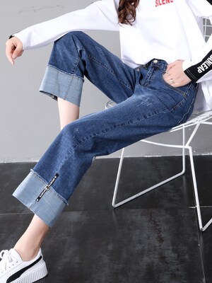 Quần jeans ống rộng cạp cao nữ mùa hè 2019 phiên bản 2019 xuân mới dành cho nữ cạp cao quần lửng ống suông thẳng - Quần jean quần bò ống rộng nữ Quần jean