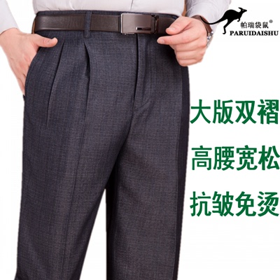 Quần len Kangaroo nam rộng không có quần phù hợp với quần cạp cao eo sâu gấp đôi quần lót nam trung niên mùa thu và mùa đông dày quần âu nam Suit phù hợp